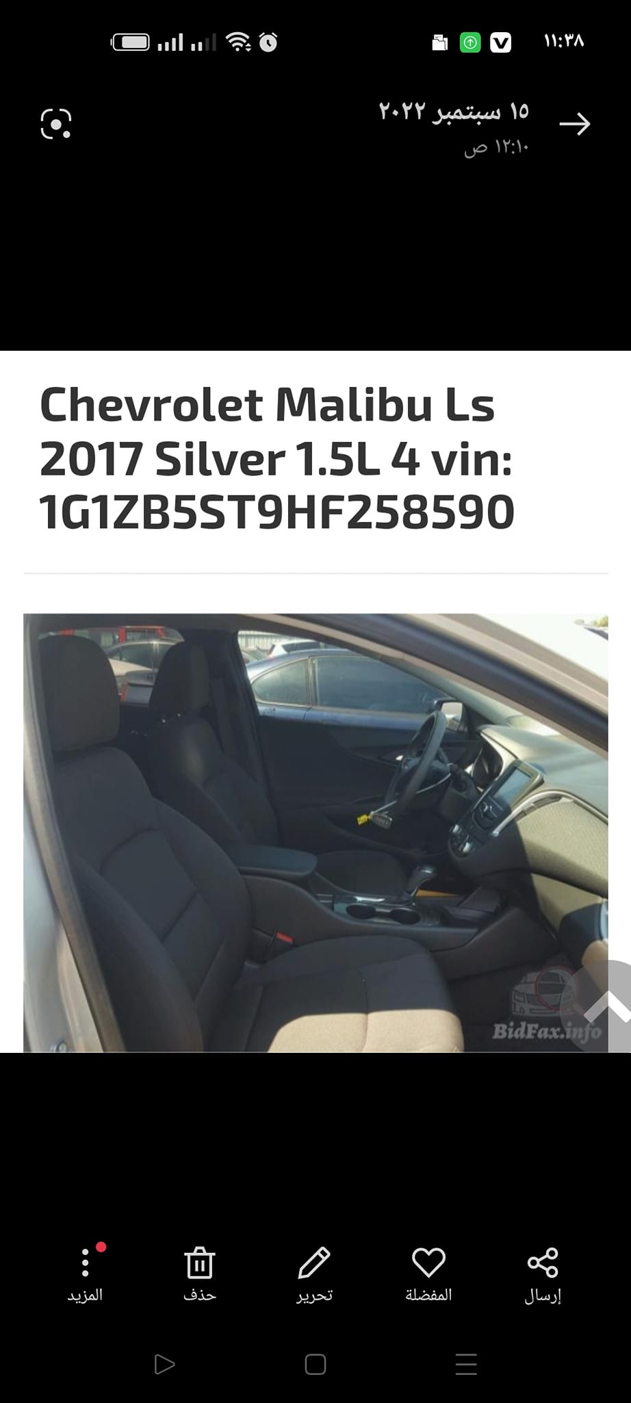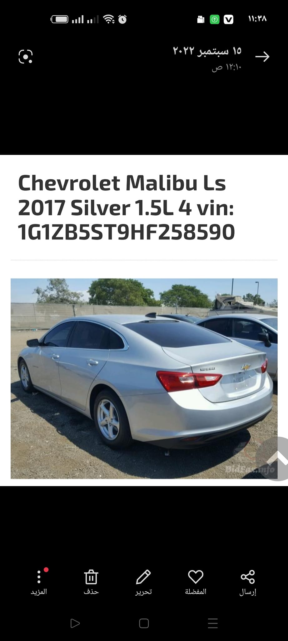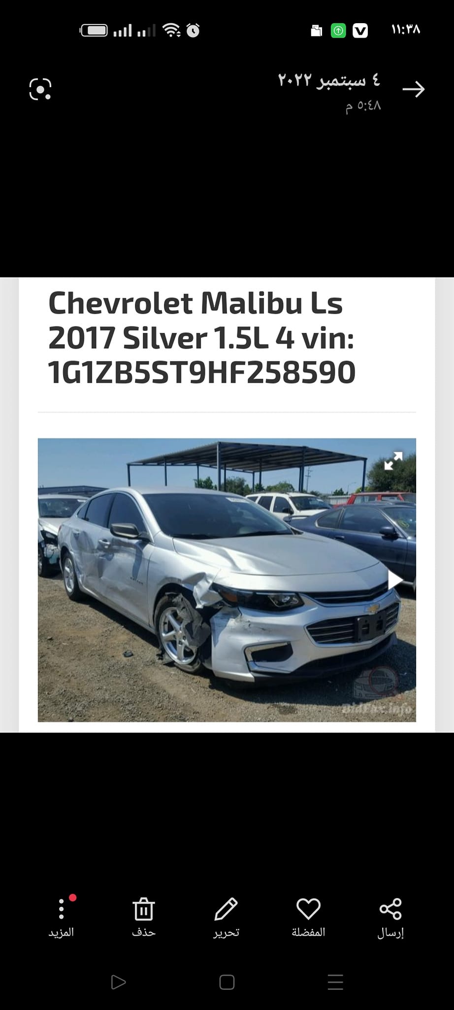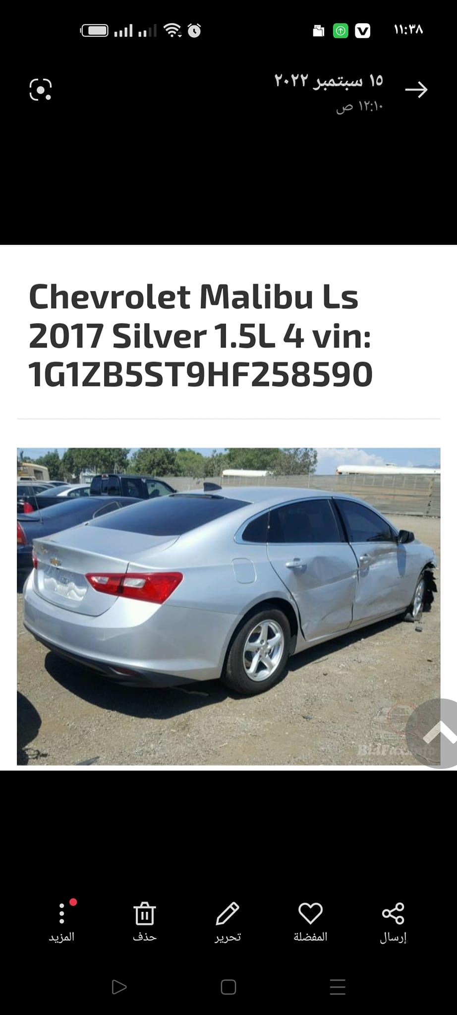 Chevrolet Malibu 2017 شيفروليه ماليبو 2017 4 ابواب بصمة ويل كب اوتو ستوب شاشة ايباد بجم كبس حادث بدون ايرباك صبغ مكان الحادث نفس ماموضح بالصور السعر: 12700$ للاستفسار 07512212368