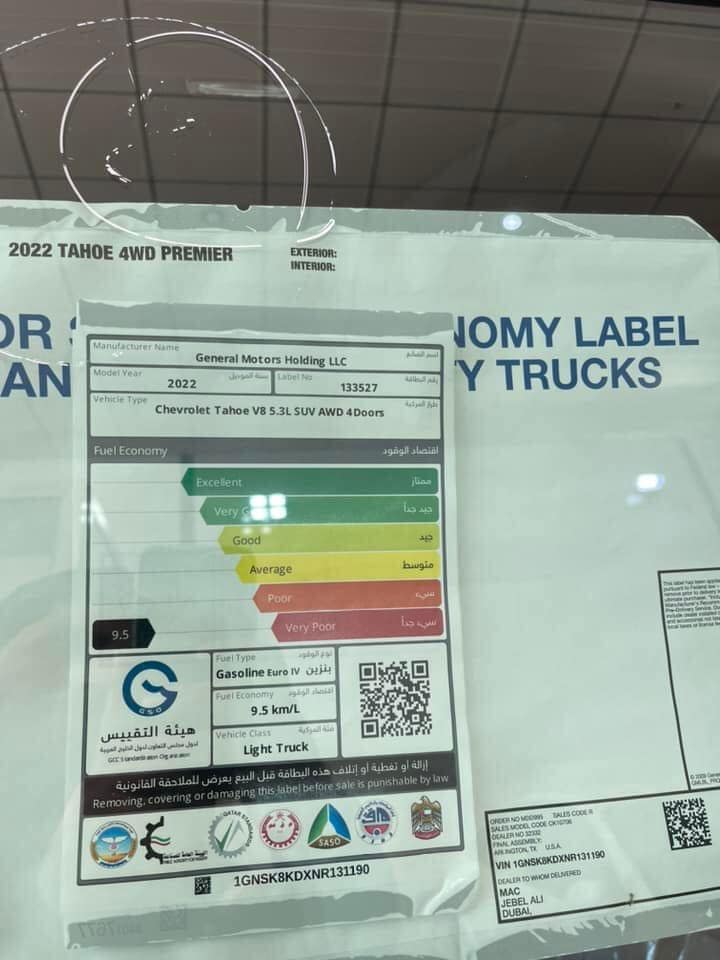 شيفروليه تاهو 2022 صفر كم 5300cc بريمير فول مواصفات داخل قرميد دخول ذكي بانوراما دشبول الكتروني داتا شو رادار امامي وخلفي وجانبي كامره 360 لايت LED زينون صندوق كهربائي دوسات جانبيه كهربائيه شاحن وايرليس تشغيل عن بعد جكات رفع وتنزيل مقاعد تبريد وتدفئه ومواصفات اخرى كثيره السياره ضمان لمده ٣ سنوات السعر بدون لوحات 79500$ السعر مع لوحات اربيل82000