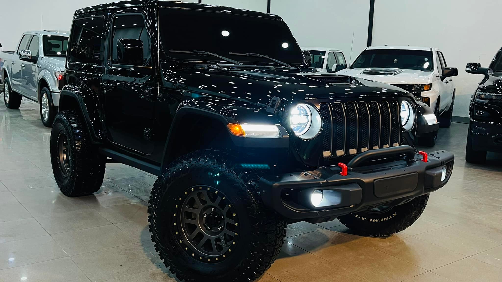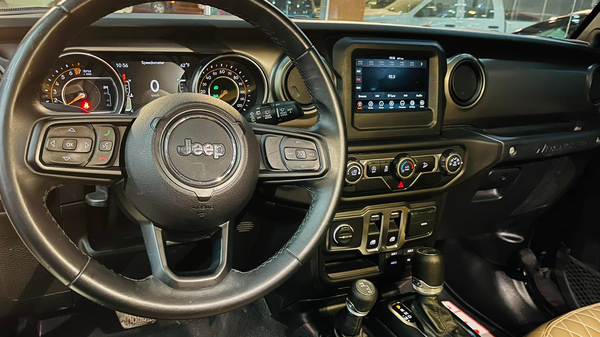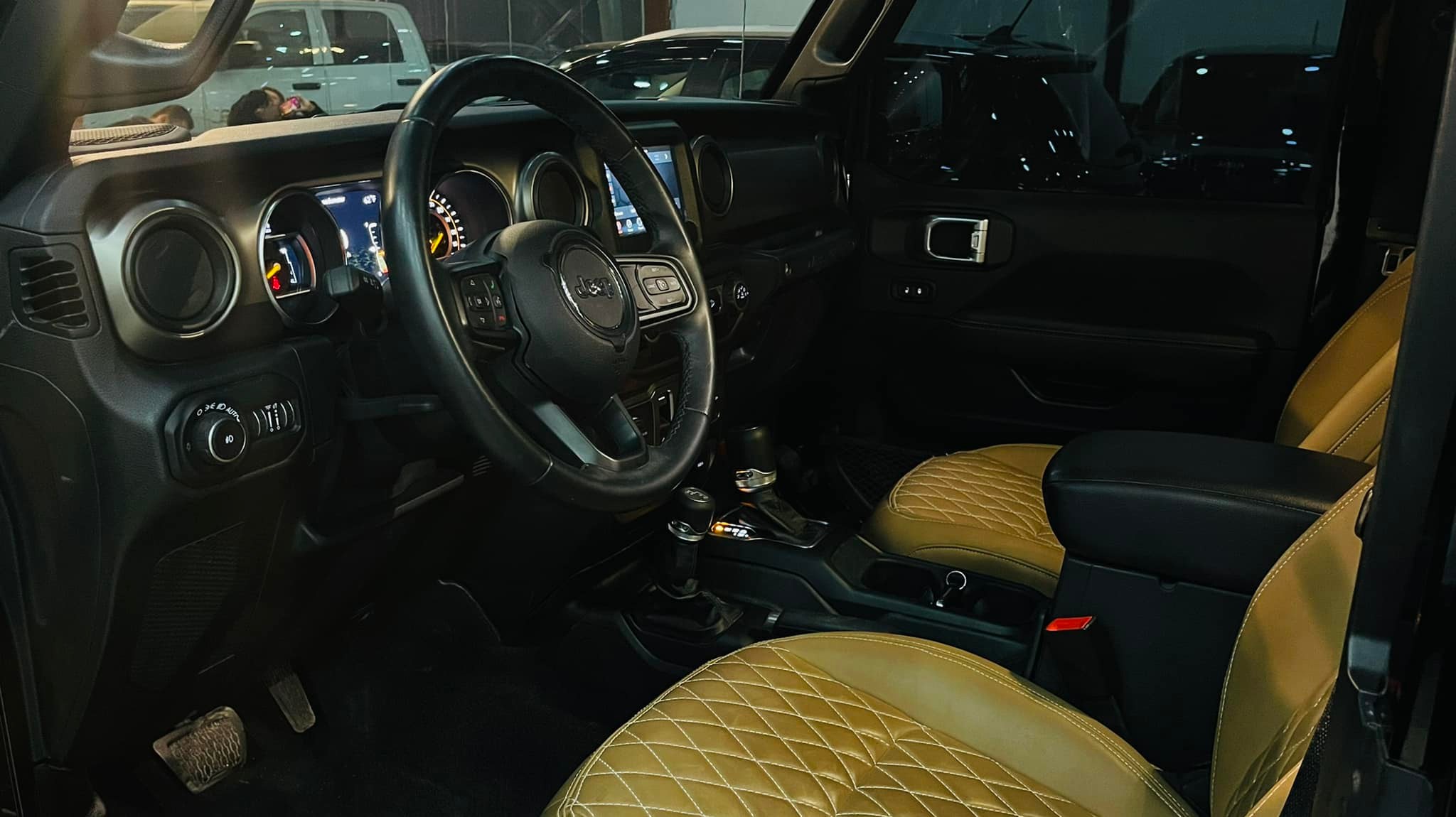 Jeep Wrangler JL 2 DOOR 2020 4X4 2.0 مواصفات شاشة كبير شغال قفل مركزي جام كهربائي كشنات جلد داخل قهوائي لايت بگ لايت ليد ٣ قطع صبغ تايرات Off road original بدون دواخل بدون شانصي