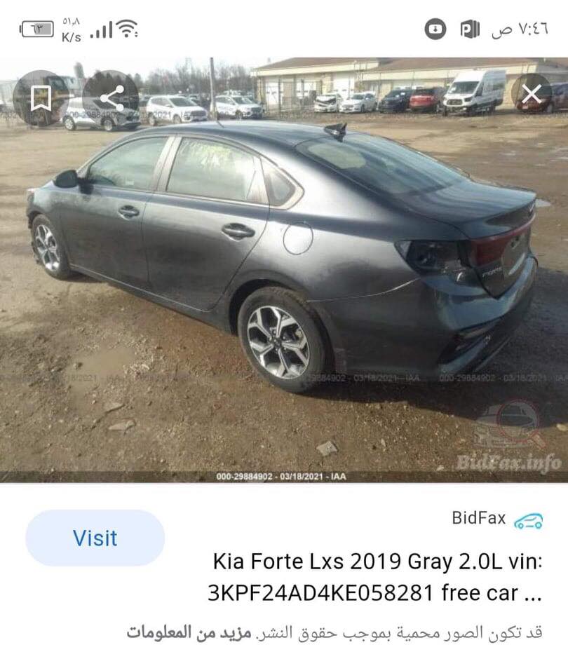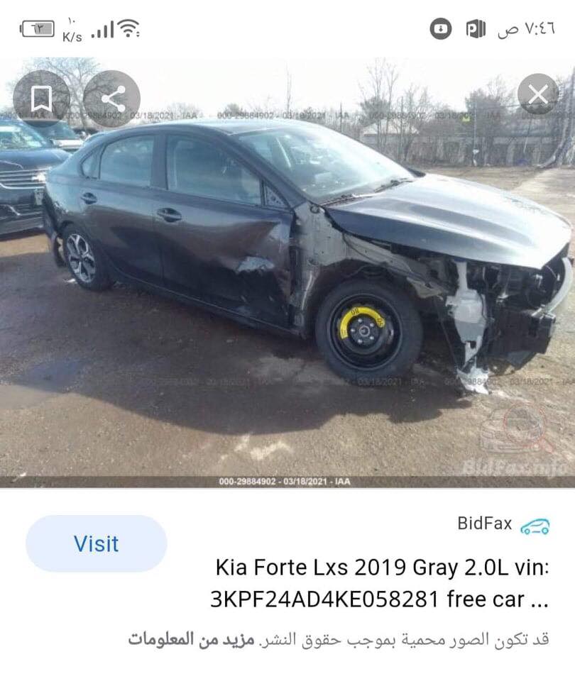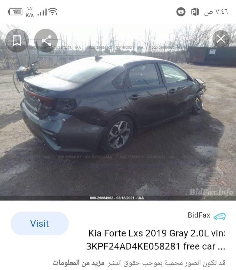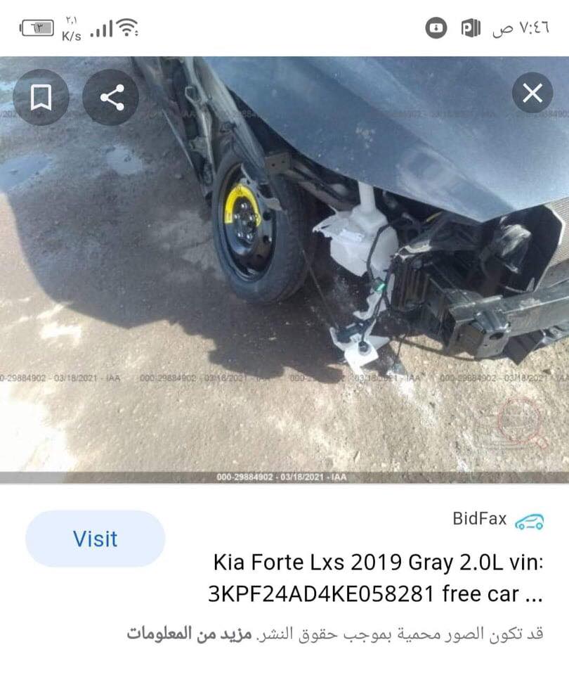 كيا فورتي ٢٠١٩ للبيع حادثها الجاملغ الايمن الامامي ونص الباب الامامية عكس السائق جميع الايرباكات سليمة بيها بارد قليل كلش بالجاملغ الايمن الخلفي وفعصه بسيطه كلش بباب السائق ماشية ٧٦ رقم اربيل محرك ٢٠٠٠ دوش مواصفات نص فول