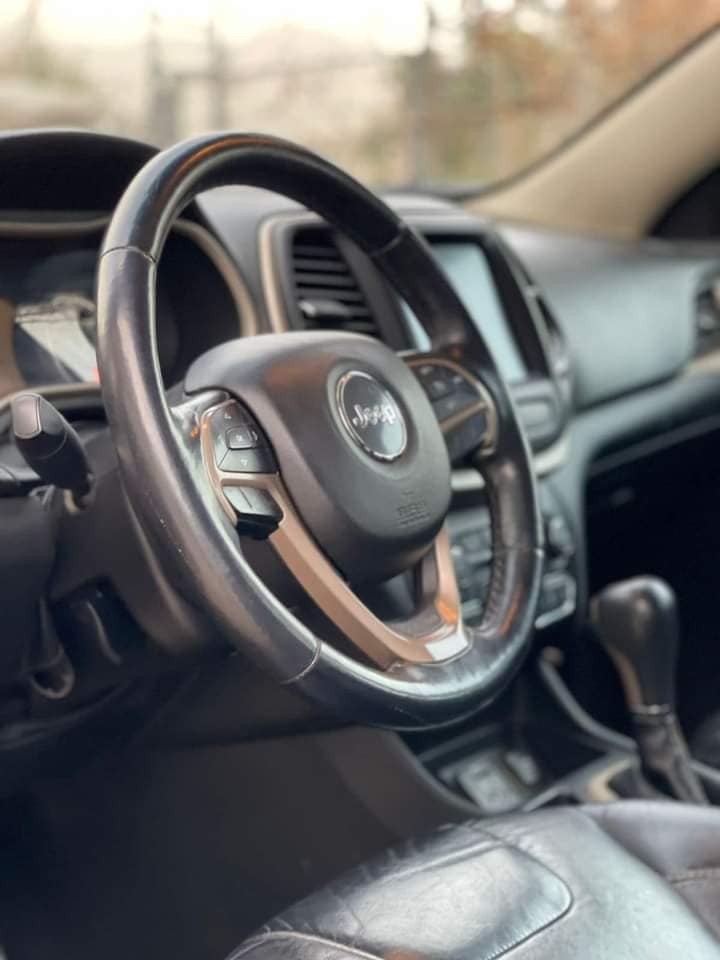 جيب شيروكي ٢٠١٦ لمتيد محرك 4 سلندر باسمي بصمة شغال عن بعد مقاعد جلد شاشه كبيره ايپاد مقاعد هيتر كاميرا رادار ويل كب ستيل شركة كشافات لايت زينون بگ لايت ليد تبريد مركزي هاند بركي بصمه تحكمات ستيرن السياره جاهزه 100% بدون عالبارد بدون شخط 4 اطارات طخم جديده مصدر USB