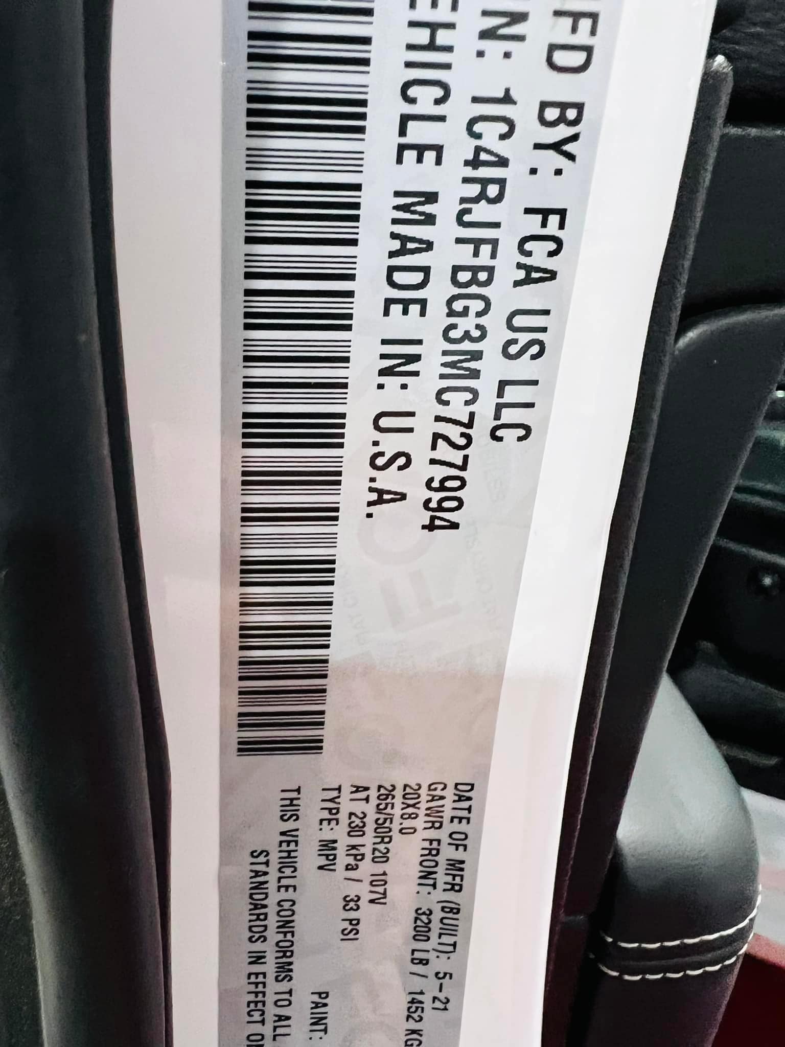 جيب جراند شيروكي ليمتد 2021 حجم المحرك V6(3.6L) عداد المسافة 3990 mile المواصفات : بصمة تشغيل بصمة أبواب تشغيل عن بعد (Remote start ) صندوق شفط كهربائي كشنات جلد تدفئة استيرن تدفئة كشن ميموري فتحة سقف سلايد حساسات خلفية+ كاميرا اوتو بارك Auto Park رادار أمامي تفاعلي (المحافظة على المسار+بريك تلقائي) رادار جانبي (نقاط عمياء) رادار خلفي تحكم وضعيات القيادة(بكرة كير) اوتو ستارت Auto start اوتو ستوب Auto Stop