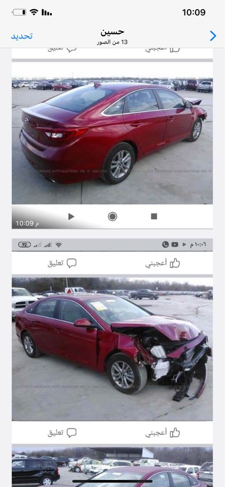 HYUNDAI SANTAFE 2017 هيونداي سوناتا 2017 ماشيه 70 الف السياره واضح حادثه بالصور هزه جديده سنويه صارله شهر من نافذه السياره كلش نظيفه وجاهزه من كل النواحي تحويل او وكاله مكاني بغداد السعر: 14000$ (140) ورقة للمزيد من المعلومات : 07709422755