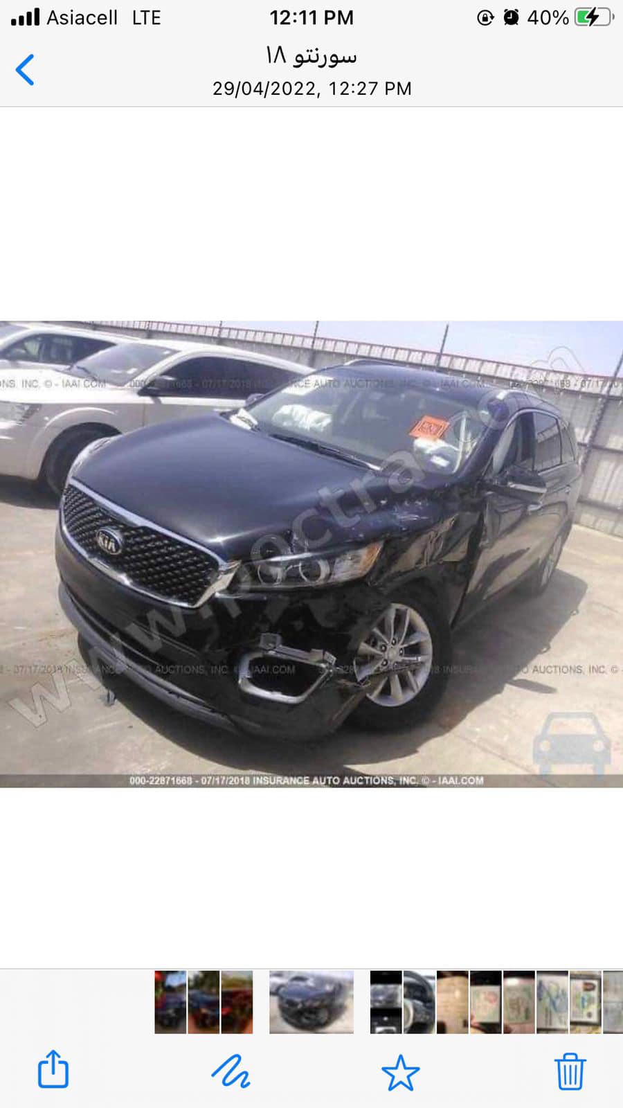 KIA SORENTO 2018 كيا سورنتو 2018 لون اسود - 6 سلندر 7 راكب سيارة نظيفة كلش ماشية 36 الف ميل شاشة صغيرة وكاميرا دوارة تبريد قطعتين ايرباك طاك ستيرن ودشبول سنوية باسمي والهزة بعدها مساقطة عنوان السيارة / بغداد الشعب السعر 20500$ (205) ورقة للمزيد من المعلومات : 07711584447