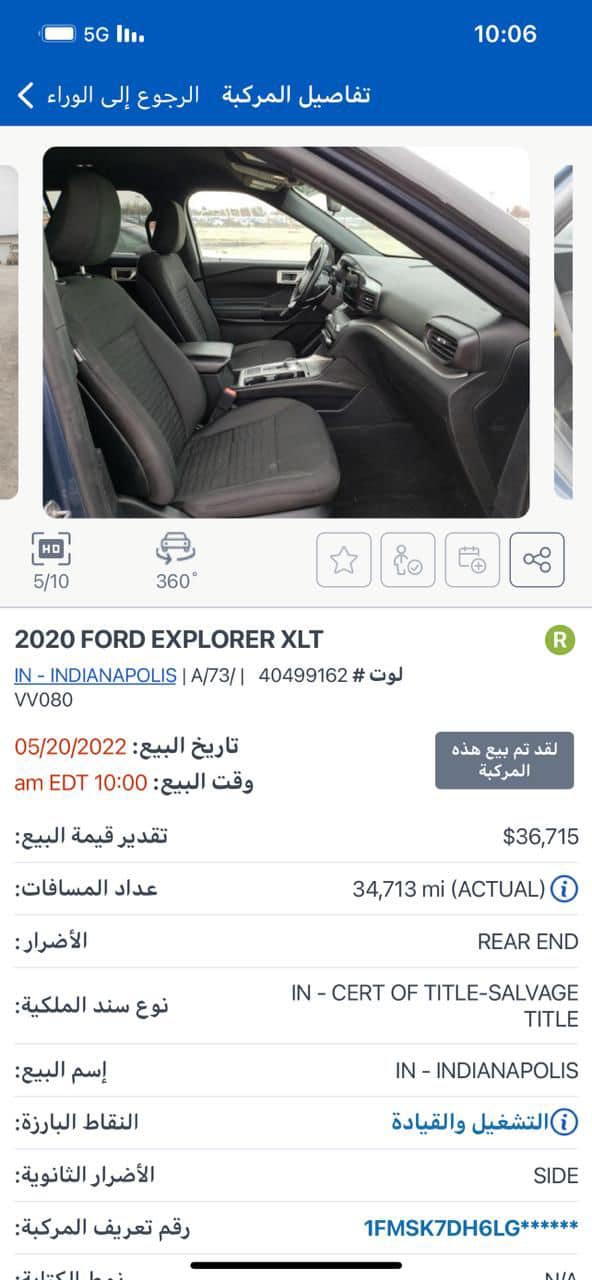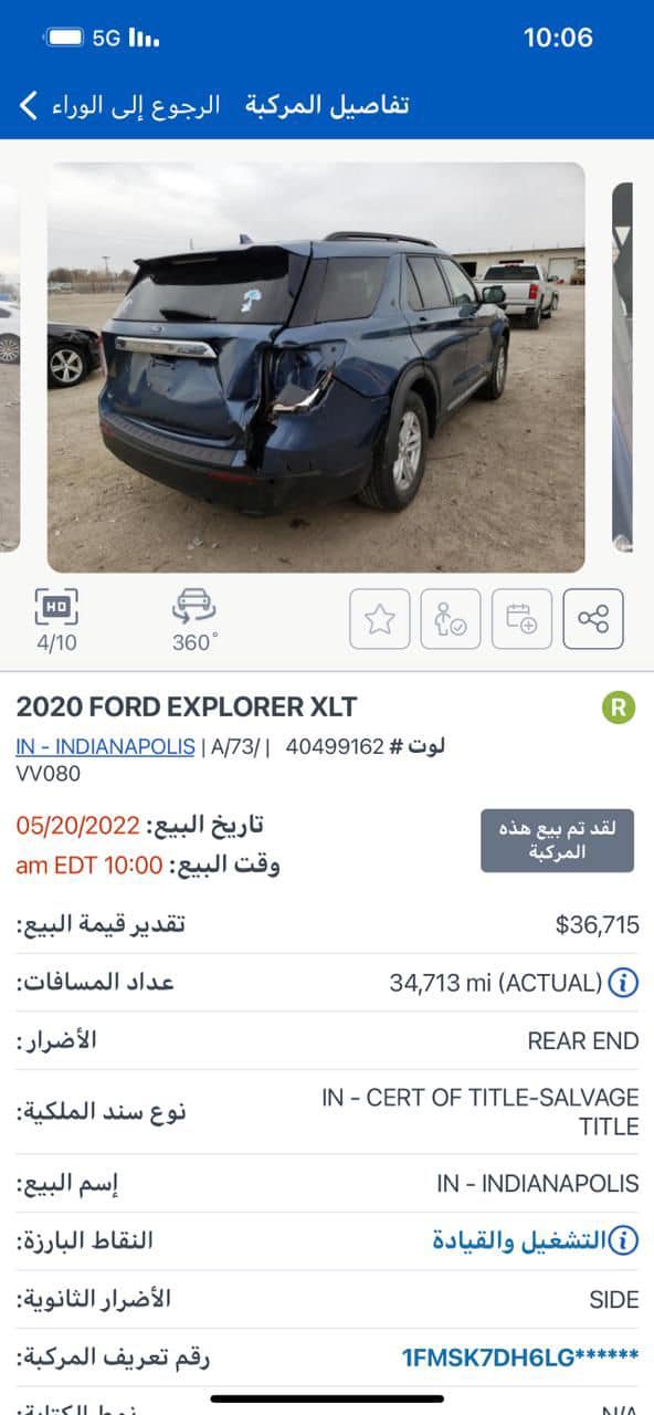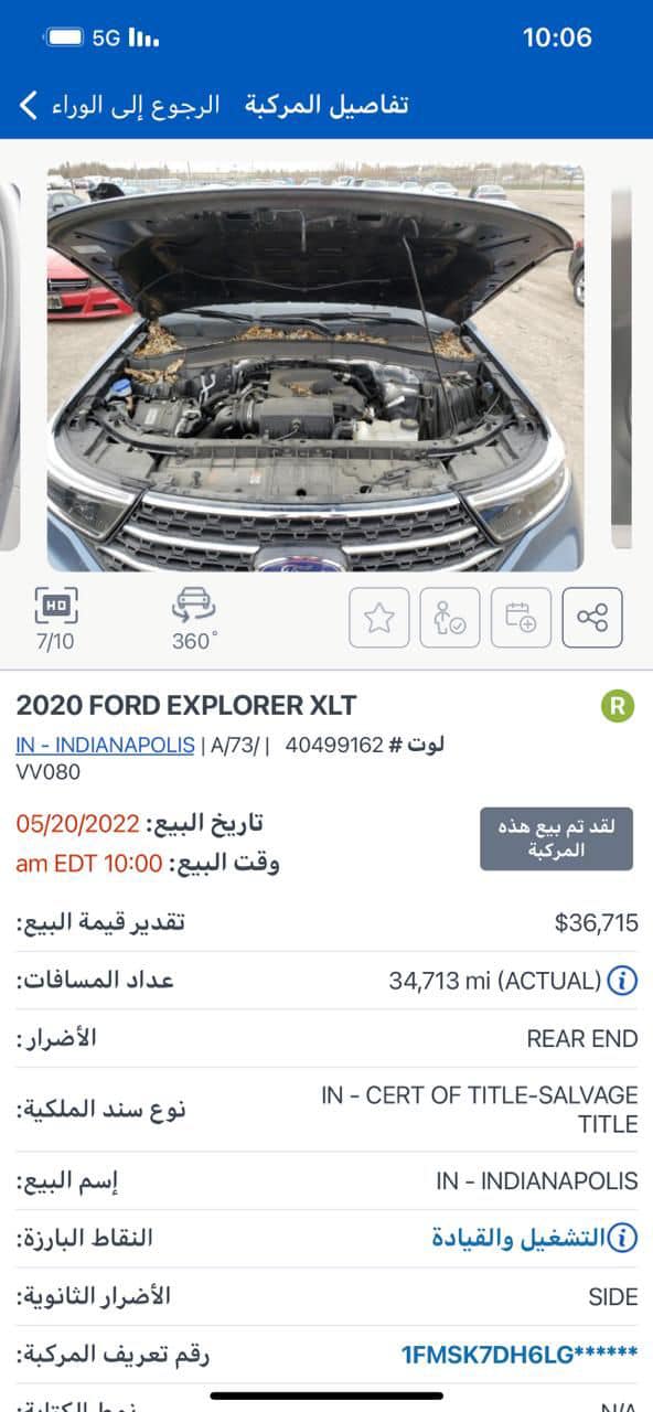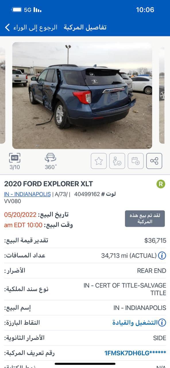 Ford Explorer XLT فورد اكسبلور 2020 XLT رقم اربيل هزة ورقم جديد ارباكات سليمة مواصفات :: * بصمة * لدات مصباح امامي وخلفي * رادار امامي + رادار جانبي * شاشه تاب حجم كبير * شاشه اعطال * كشنات VIP منفصل * حساس قياس ضغط هواء الاطارات * ويل كب كروم * سبع انظمة قيادة (رياضياقتصادي رمال الخ.....) * ثلاث كير * نظام قيادة ذاتية نظام قيادة (رياضي + اقتصادي) ملاحضات : حجر الصالنصه بلادي شرط الفحص الضرر؛ : باب خلفي طرف يسار ونص صندوق و صور قبل التصليح موجودة مع باقي الصور شواصي لغد كلهم بلاد بدون عيب السعر :270 $ ورقة و مجال بسيط العنوان : اربيل معرض اربيل كارس للأستفسار الرجاء اتصال او مراسلة الواتس اب 07511558686