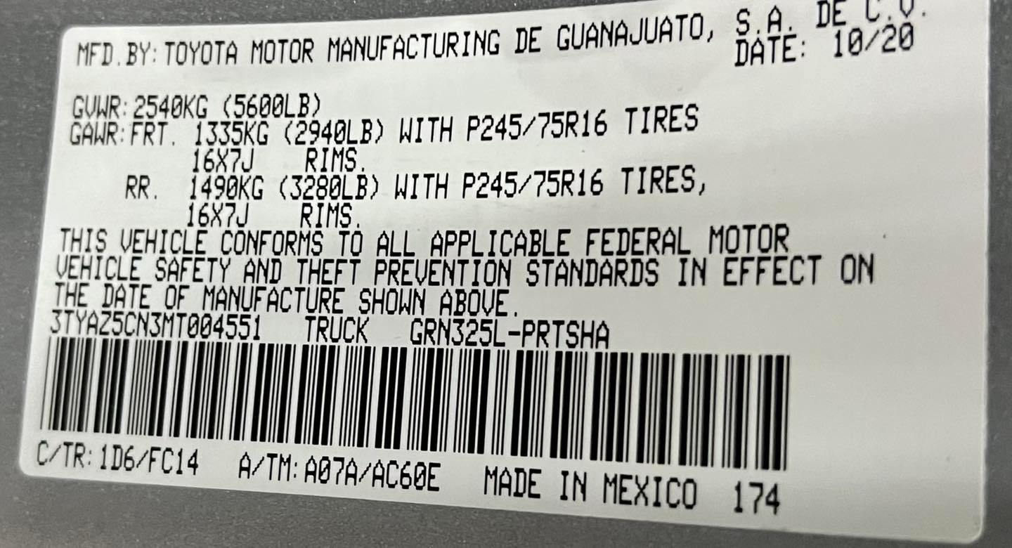 toyota tacoma SR5 - 2021 V6 - 3.5 - 4x2 شاشه و كاميره رادار ويل ١٨ ٣.٠٠٠ ميل رويشتووه ١ قطعه صبغ ( جاملغ)