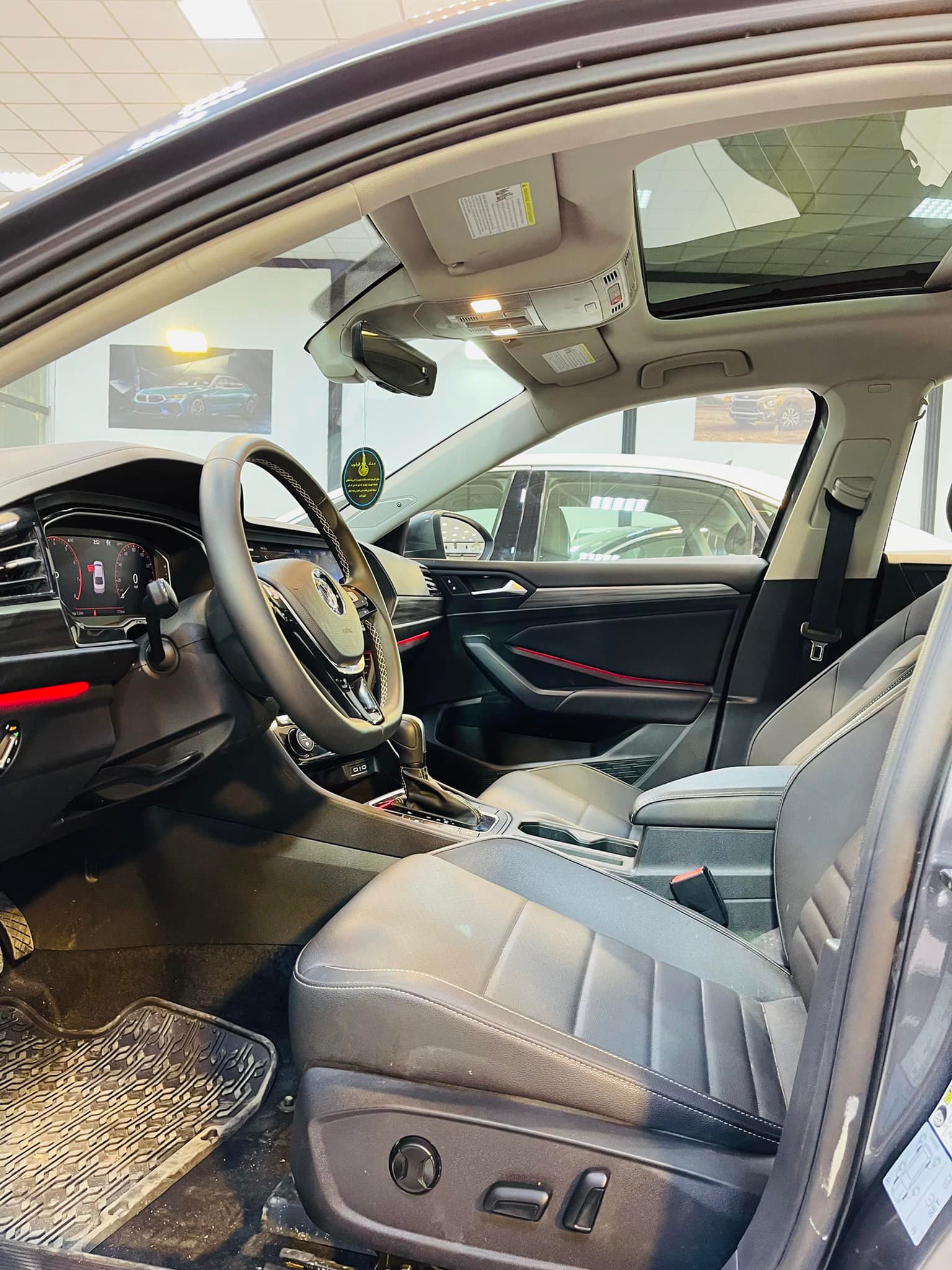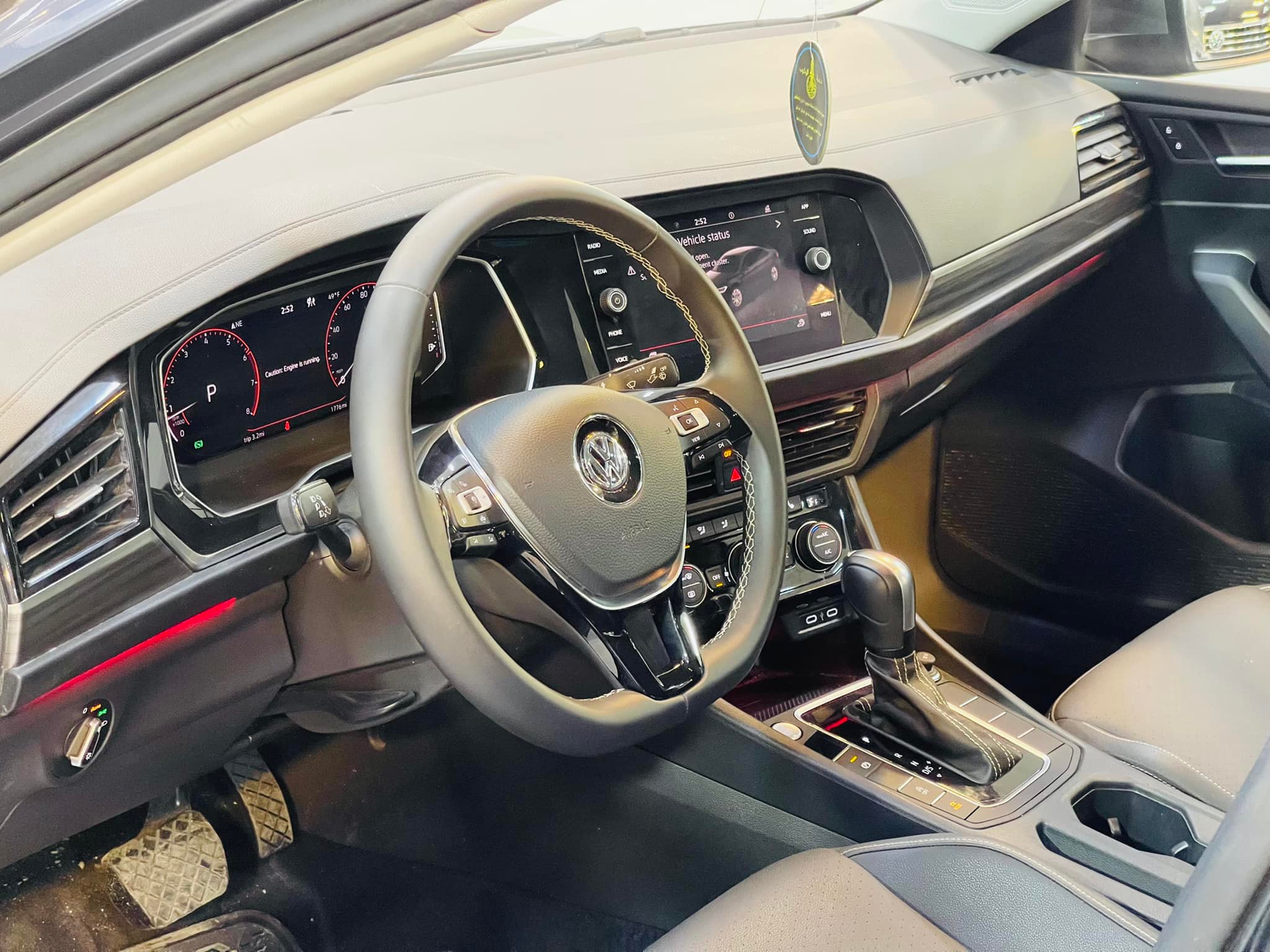 فولكس واگن جيتا 2021 مواصفات SEL شاشة الكتروني بصمة ابواب و تشغيل تشغيل عن بعد فتحة بانوراما بريك بصمة كشنات امامي و خلفي جلد و تدفئة كشن كهربائي متحرك داخل ليد ملون شحن وايرلس ماشية 1776 ميل الضرر جاملغ مصبوغ