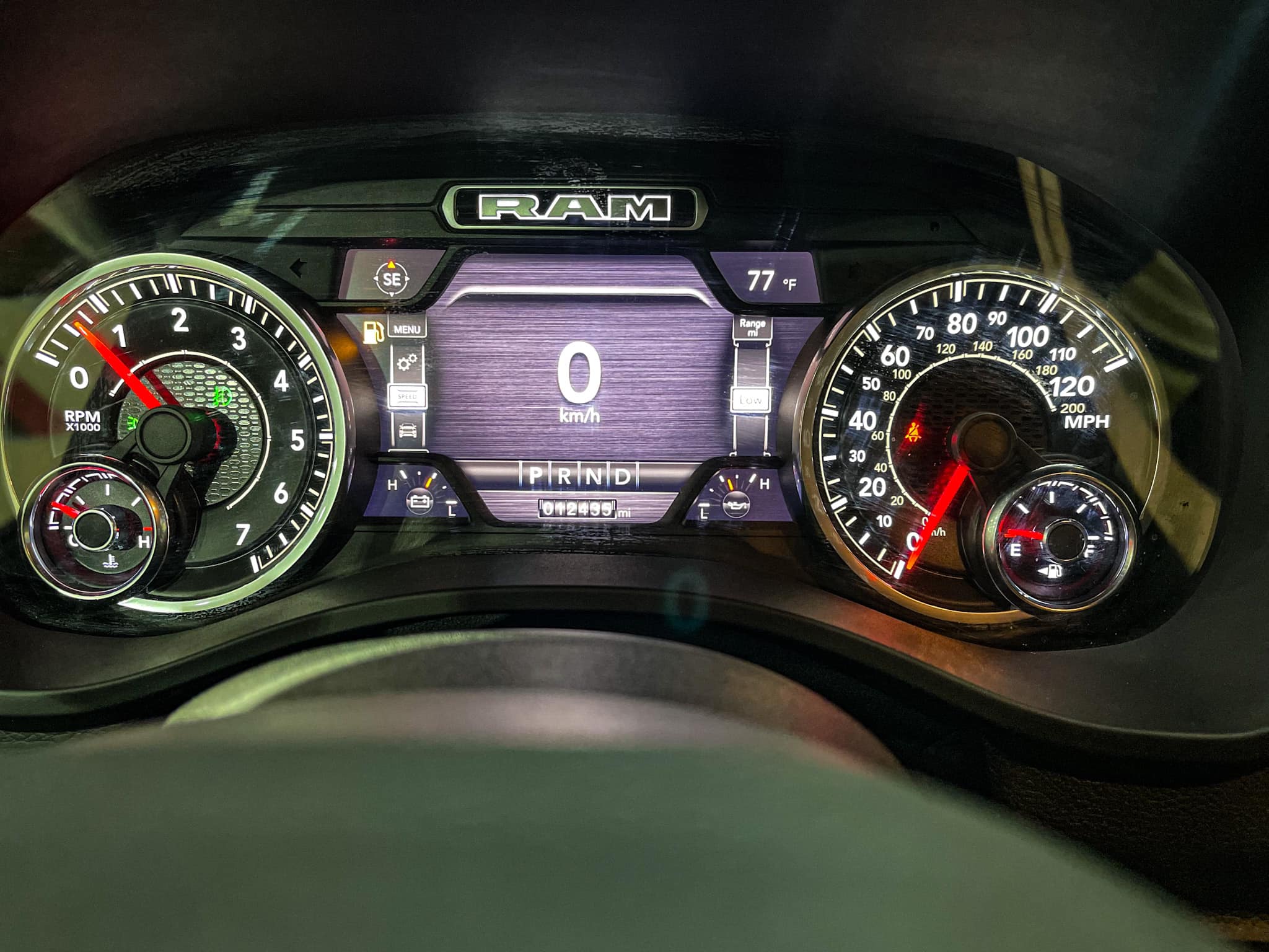 دودج رام 1500 2020 V8–5.7L—4/4 ماشيه 12 ميل بصمة شاشة لايت ليد رادار كشن جلد و هيتر ثين الوان داخلي كيچ دجيتال دبل اكسل بدون صبغ