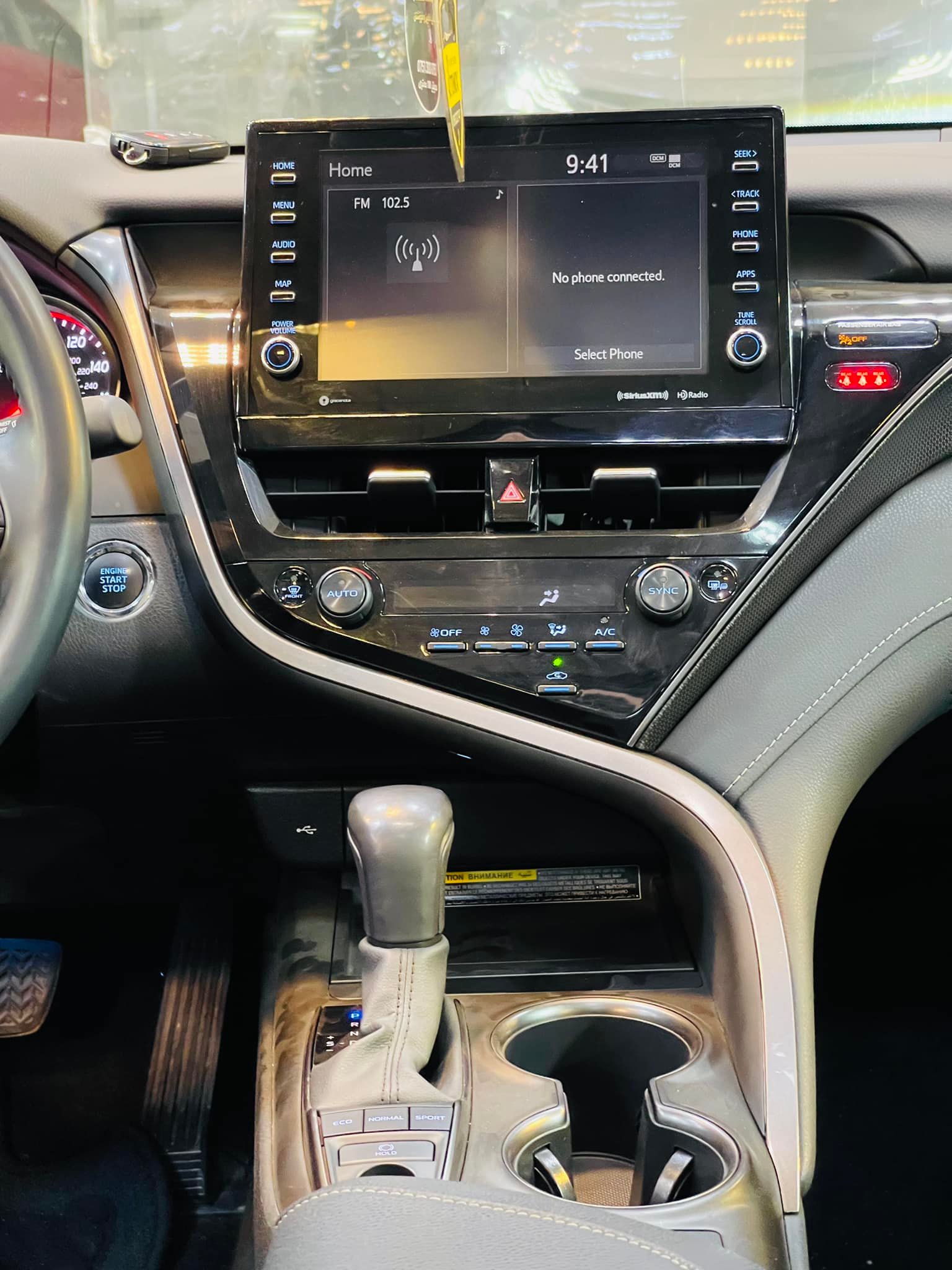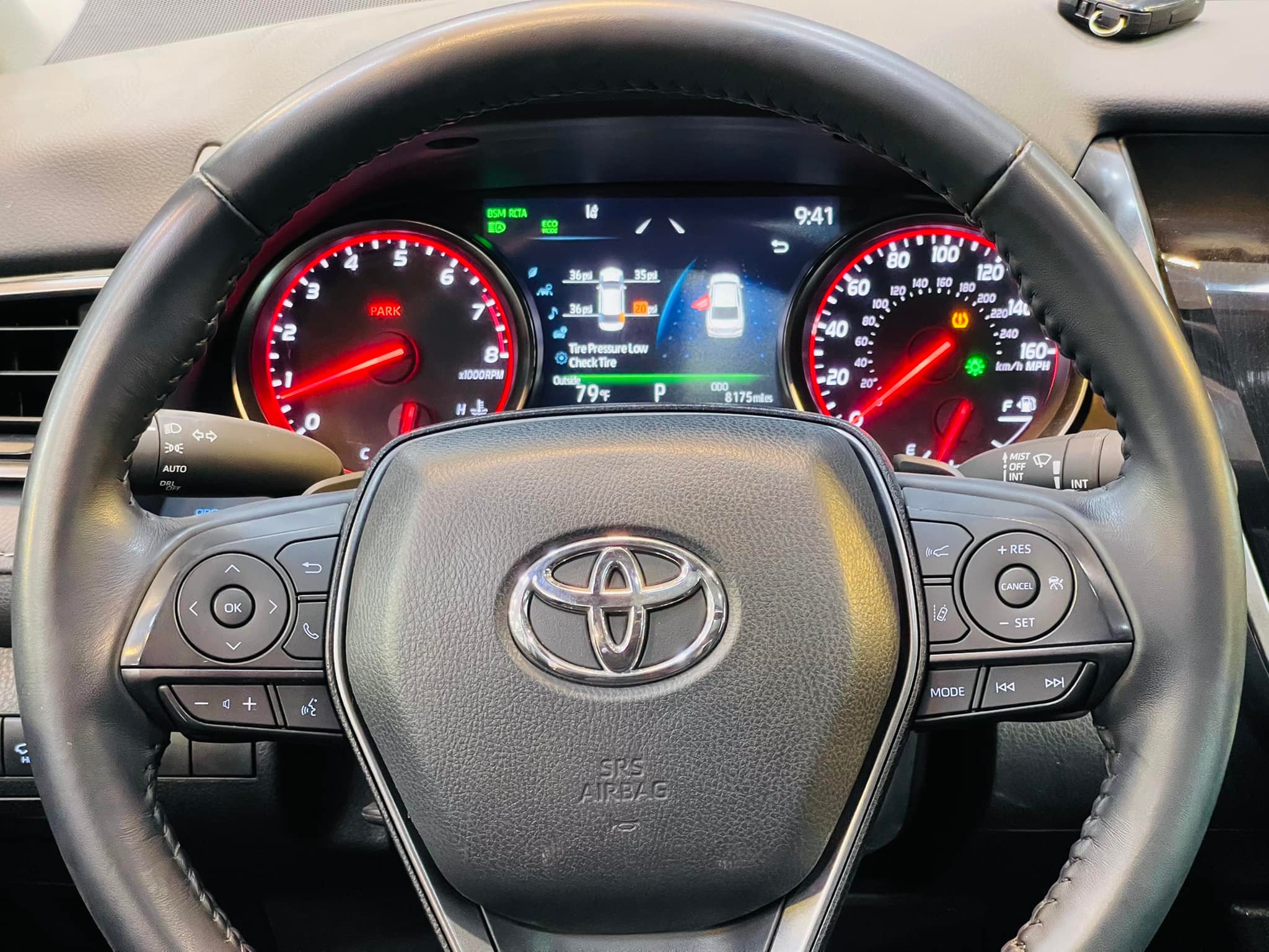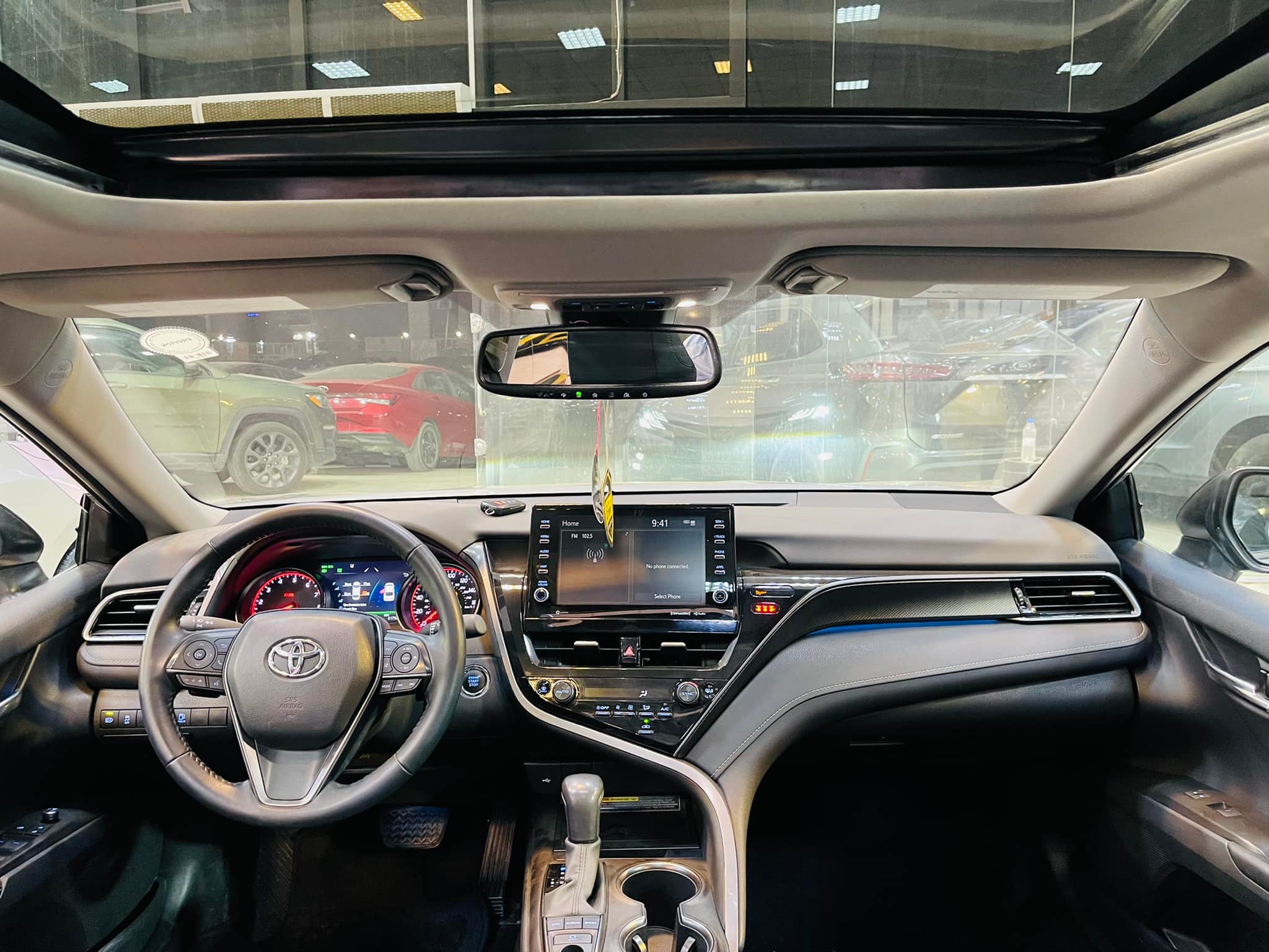 تويوتا كامري 2021 مواصفات بصمة ابواب و تشغيل فتحة بانوراما كشن تدفئة و جلد و كهربائي متحرك شحن وايرلس تبريد قطعتين بريك بصمة اوتو هولد رادار كاميرا شاشة ايباد 3G تحديد مسار گير شفت ستيرن كشن كهربائي ماشية 8175 ميل الضرر جاملغ امامي مصبوغ