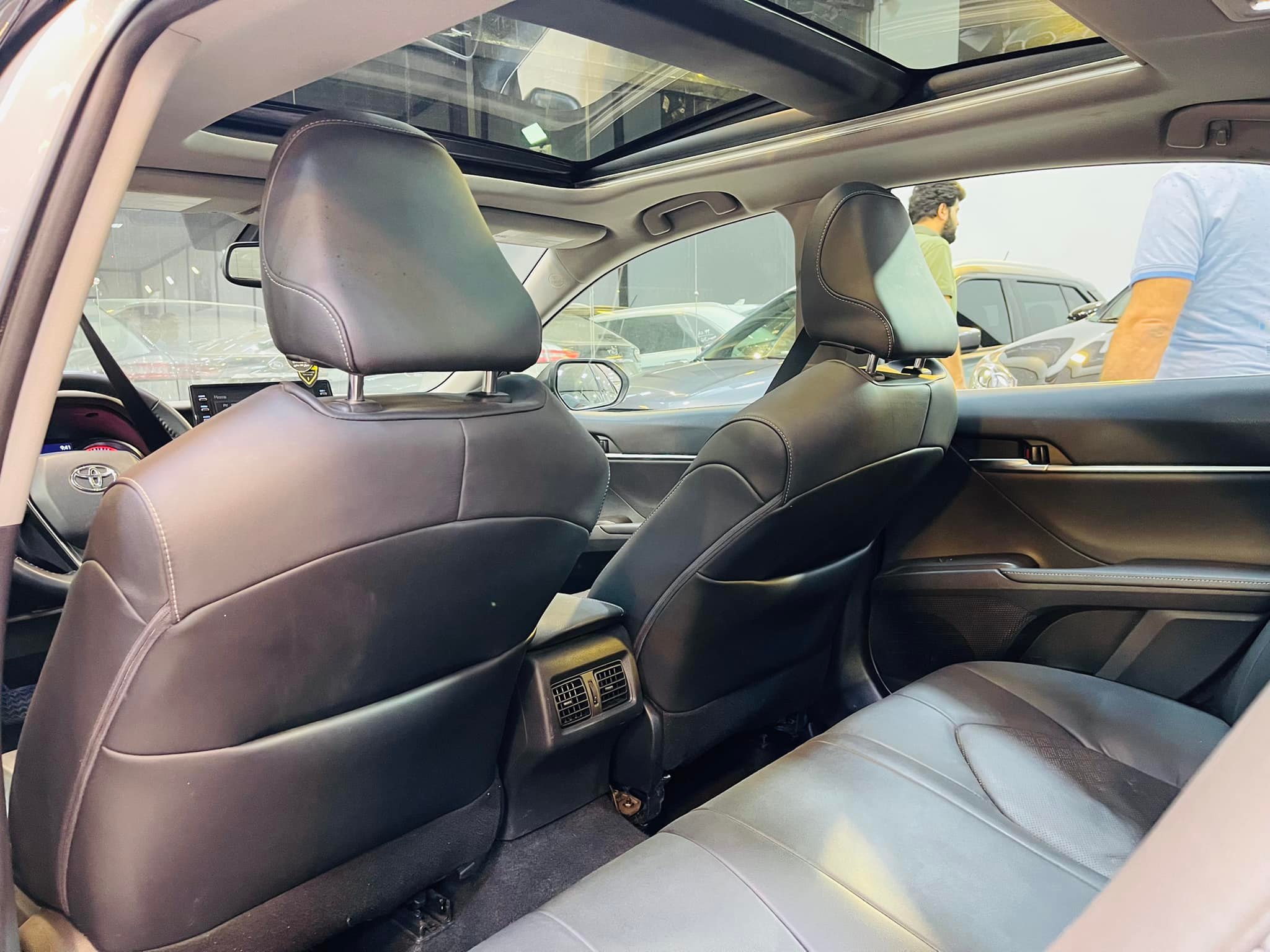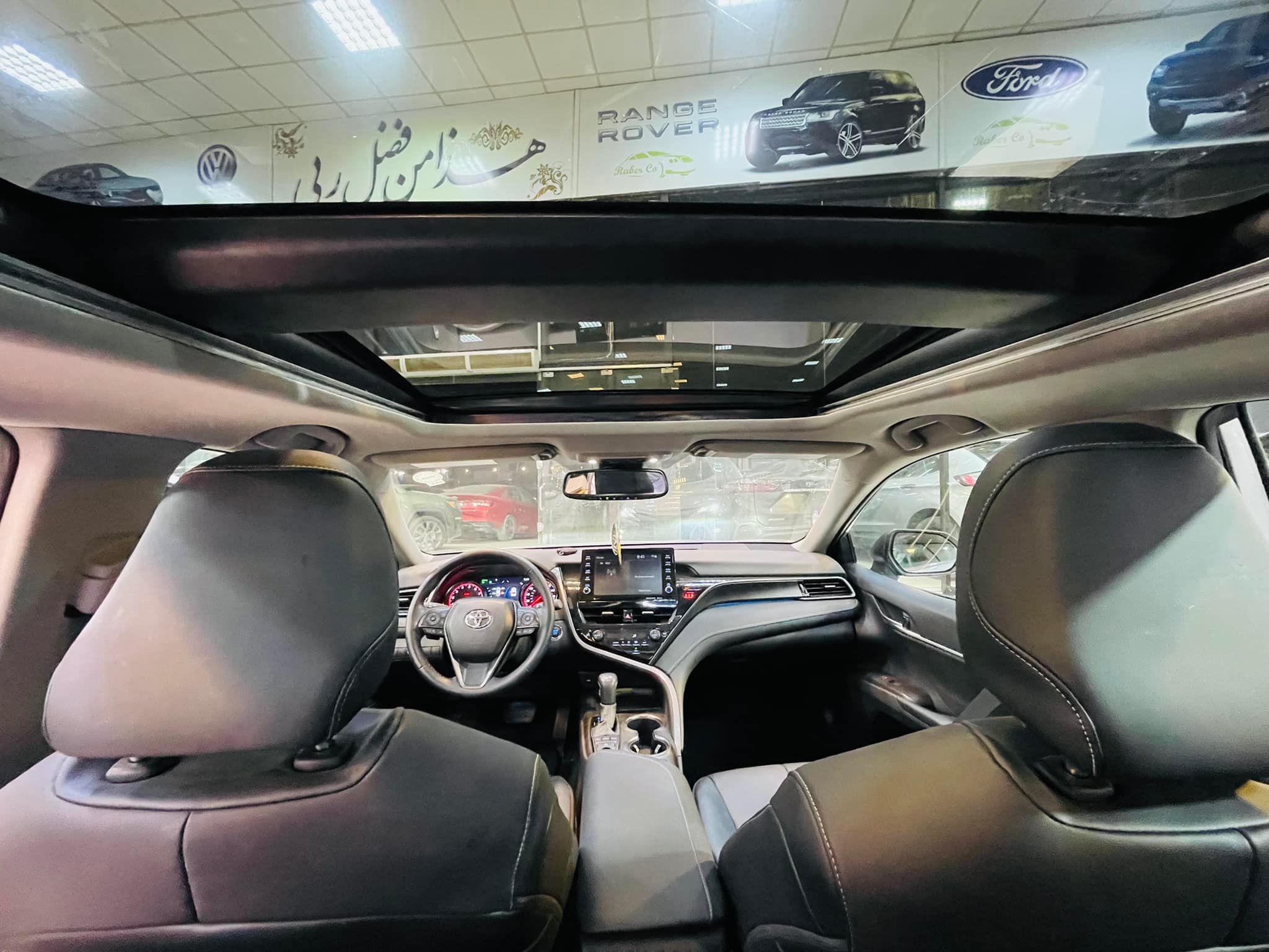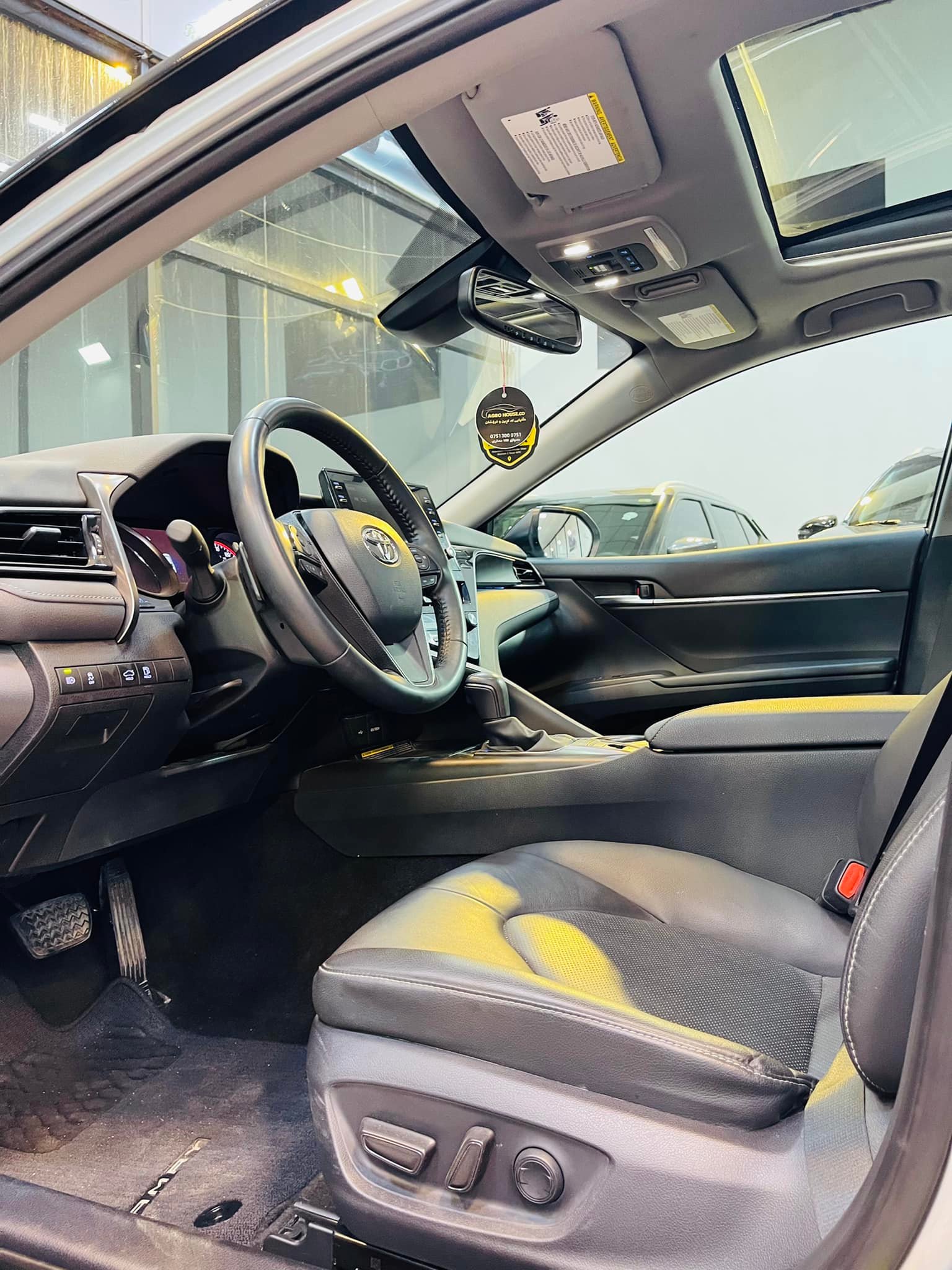 تويوتا كامري 2021 مواصفات بصمة ابواب و تشغيل فتحة بانوراما كشن تدفئة و جلد و كهربائي متحرك شحن وايرلس تبريد قطعتين بريك بصمة اوتو هولد رادار كاميرا شاشة ايباد 3G تحديد مسار گير شفت ستيرن كشن كهربائي ماشية 8175 ميل الضرر جاملغ امامي مصبوغ