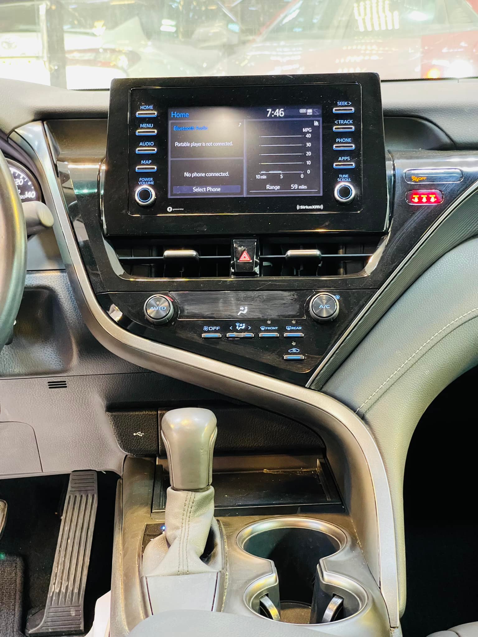 تويوتا كامري 2021 مواصفات SE رادار كاميرا شاشة ايباد تحديد مسار گير شفت ستيرن كشن كهربائي ماشية 7718 ميل سيارة بدون صبغ فقط بي مكانين تعديل بجهاز