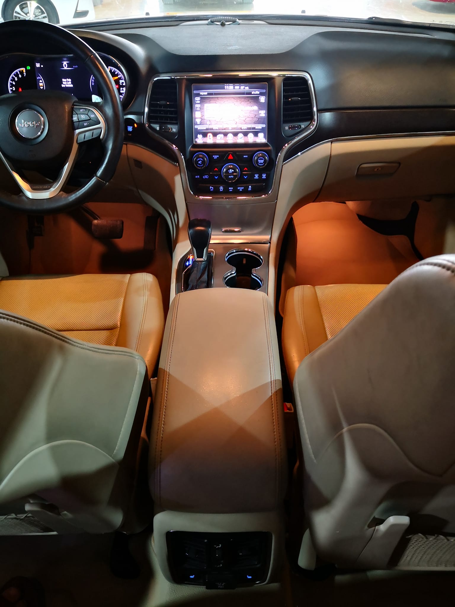 جيب كراند شيروكي 2017 اللون : رصاصي عداد المسافه : 91 الف مايل بدون ضرر كلين تايتل رقم الشاصي مرفقه مع الصور المواصفات : Limited داخل جلد كشنات كهرباء كشنات هيتر هيتر ستيرنك شاشه كبيرة تحكم ستيرن بصمه تشغيل بصمات ابواب اوتو ستوب حساس خلفي كامره خلفيه نضام ايكو نورمال سبورت نقطه عمياء اوتو ستوب