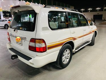 تويوتا لاندكروز 2002 محدثة 2007. تحويل او وكالة سنوية 2026 صبغ جاملغ خلفي وباب وربع جاملغ امامي بدون حادث مكفولة من الحادث محرك كير مكينة تايرات صدر مكفولات سيارة جاهزة موصفات فول 1+1 فتحة ثلاجة تبريد ثلاثة قطع سبعة 7 راكب داخل سيارة حلو سيارة نضيفة حجم المحرك 6سلندر 4500مكفولة
