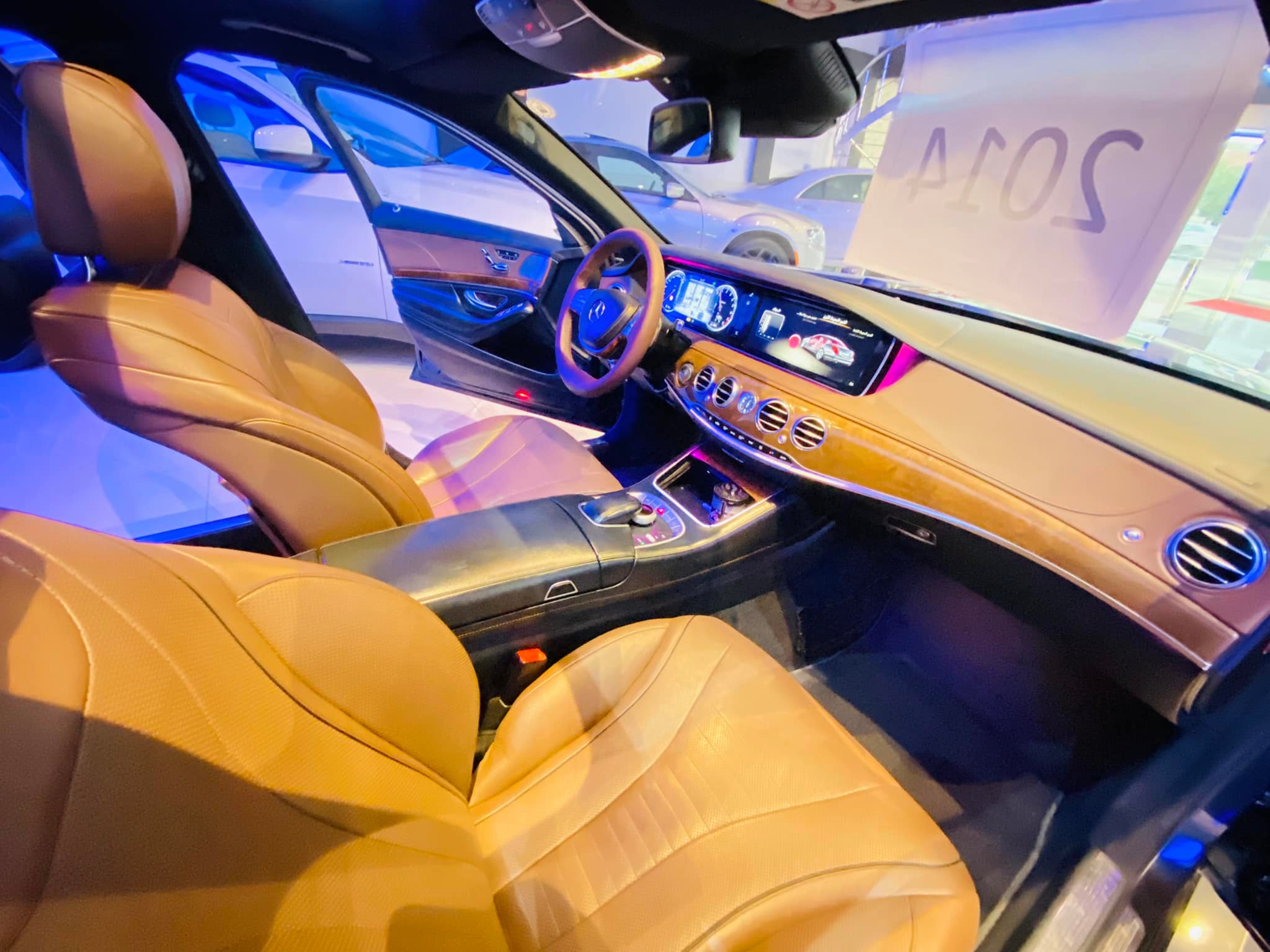 مرسيدس بنز S500 ٢٠١٤ اخوان السياره مكفولة من الصبغ والشخط والبارد والتكحيل كلها على وضع الشركة وجديييده جدا داخل قرميدي ماشية 49 الف فقط فول مواصفات ناظور ليلي وسياقة ذاتية ورادارات وكشنات مساج وكهرباء