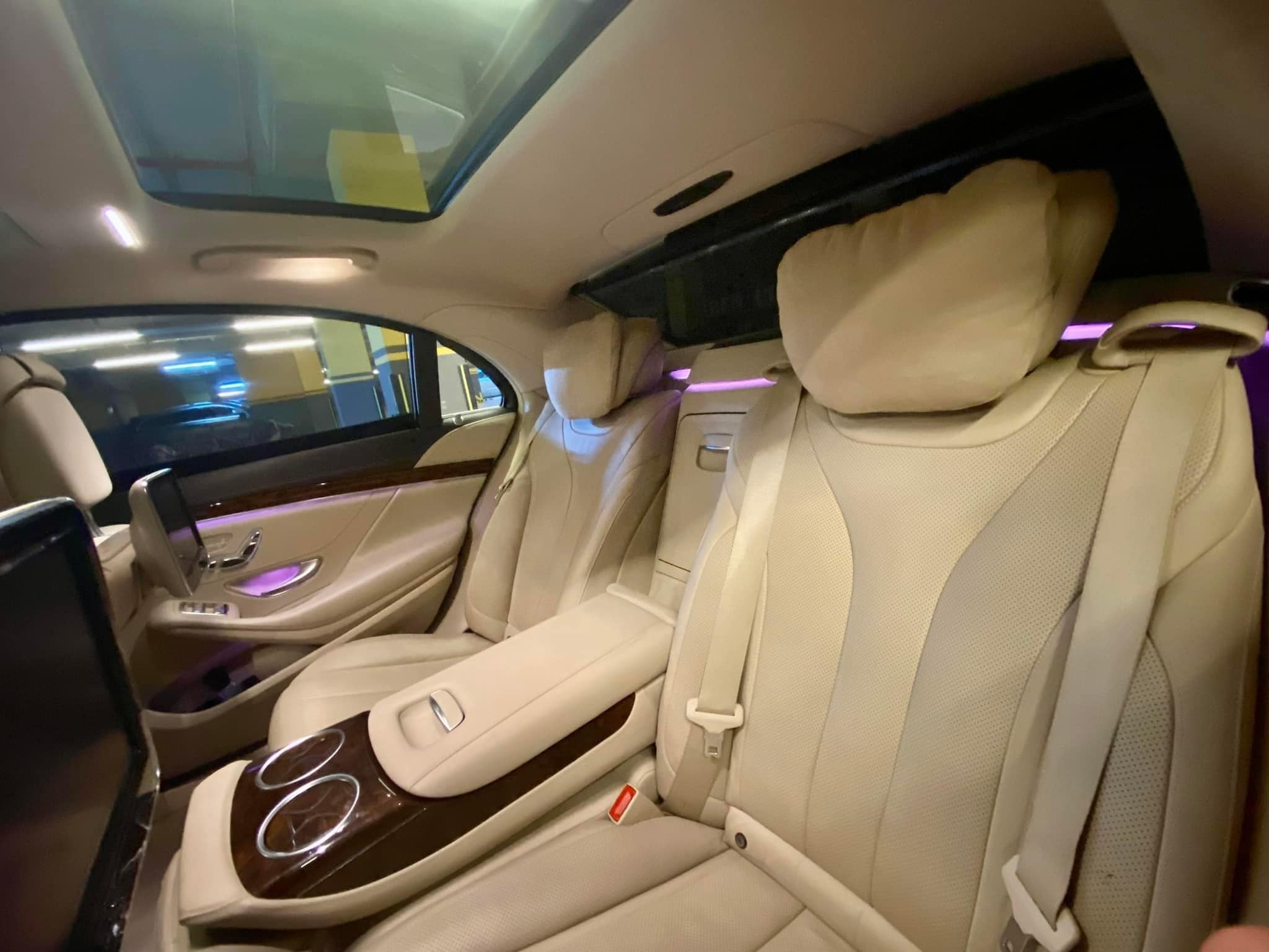 مرسيدس بنز اس -500 2014 شكل مايباخ ماشية 50,000 km فقط . السیارە خليجي و ضمان دولي بصمتين . . فول مواصفات اعلى شيء Vip نوع ناقل السرعة : اوتوماتيك عدد الاسطوانات : 8 سلندر حجم المحرك : 4.7L القدرة الحصانية : 450 HP نظام الدفع : 4MATIC فتحة السقف : بانوراما نوع الفرش : جلد - كهرباء - جميع المقاعد تبريد + تدفئة- وسادات هوائيه : 10 بصمة الابواب : نعم الشاشات : 3 بردات كهرباء : 3 حساسات: حساس الامامية والخلفية و اوتوبارك كاميرا : 360 درجة قياس الإطارات : 21 انش مصابيح : DEGITAL LIGHTS .