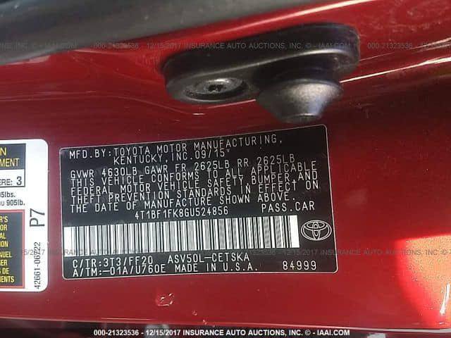 TOYOTA CAMRY 2016 2016 se تويوتا كامري الضرر فقط بنيد بدون دواخل جاملغ السائق عيار بسبب البارد السياره جاهزه من كل النواحي كير محرك تبريد صدر تايرات ماشيه 115 السياره ماتصرف عليه دينار السعر 17500$ وبيه مجال بسيط للاستفسار 07711774471